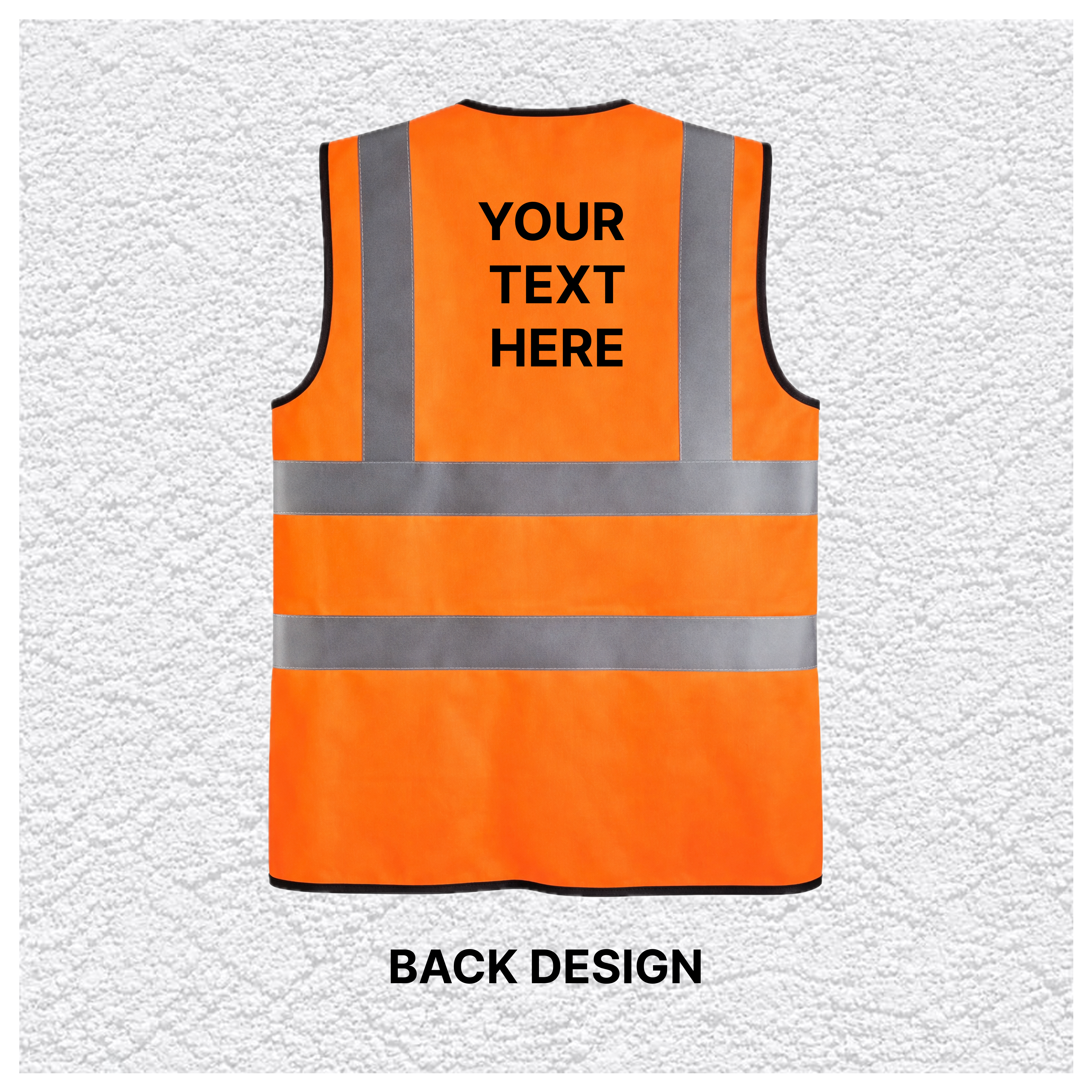 This is a custom print vest, allowing you to add logos, company names, or text to create branded workwear for teams, contractors, and businesses. Available in orange, it’s a practical and cost-effective PPE solution.