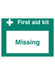 This first aid safety sign is there to highlight when a first aid box has been removed and not replaced. It simply fits on the wall allowing you to attach a first aid box to it. The "missing" wording becomes visible when the first aid box has been removed. Under the Health and Safety (First Aid) Regulations 1981 (as amended 1997) employers have a legal obligation to assess and introduce first aid provisions. Any such provisions should be easy to locate.